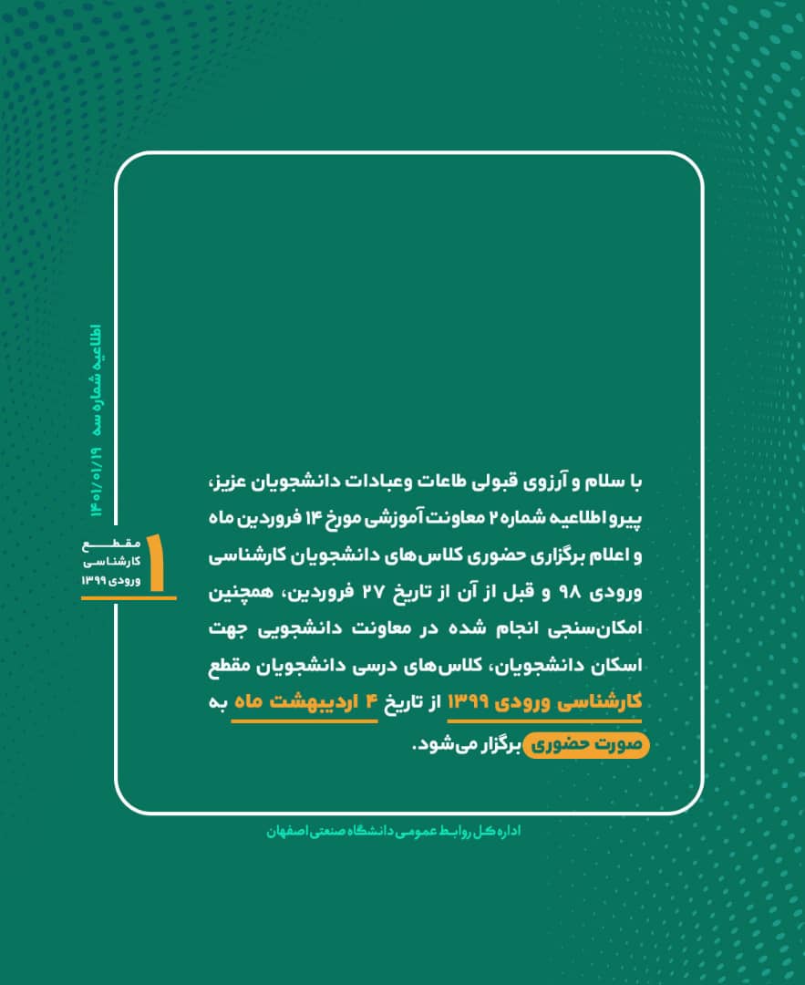 اطلاعیه شماره 3 از سرگیری آموزش حضوری