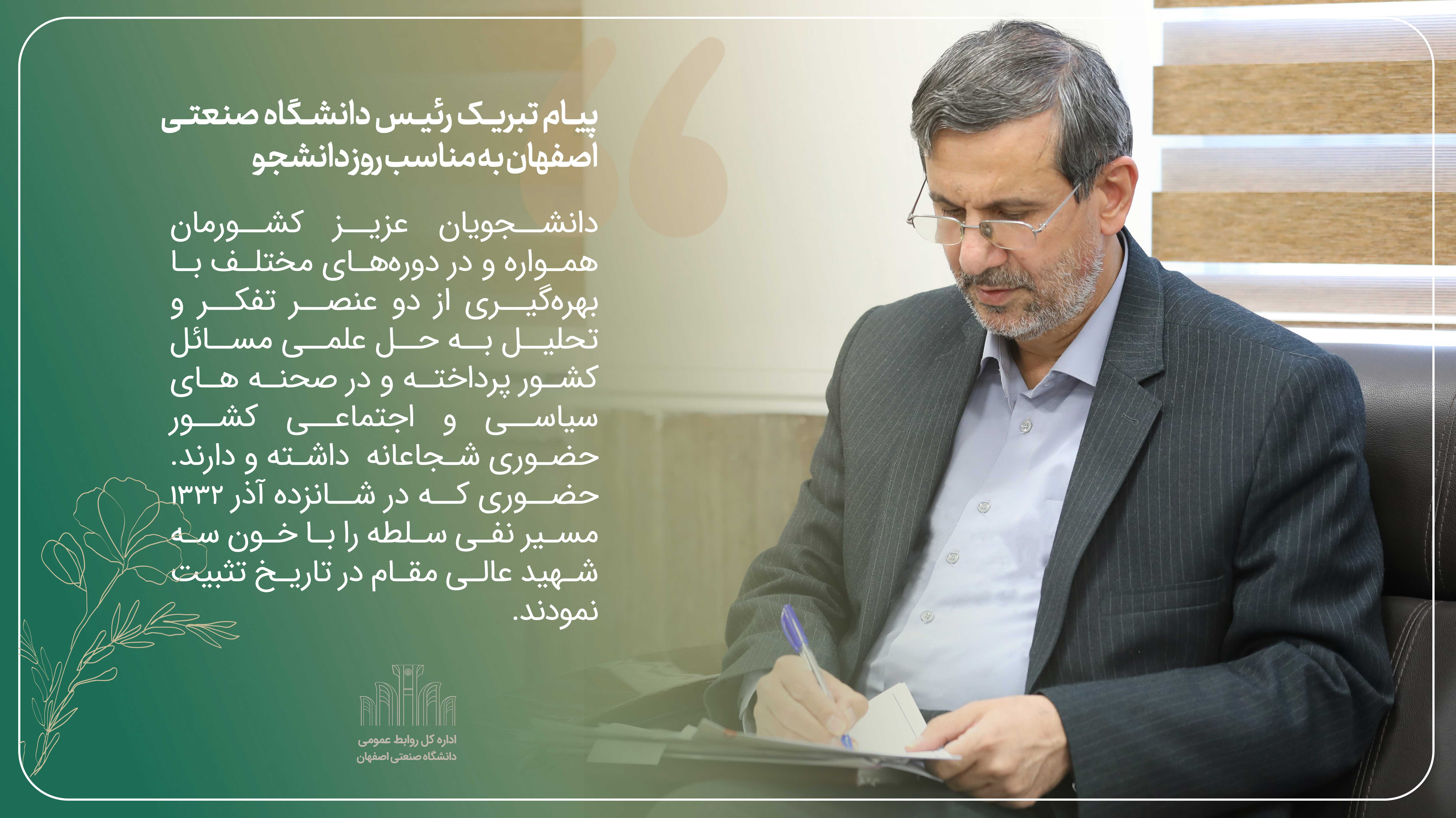 پیام تبریک رئیس دانشگاه صنعتی اصفهان به مناسب روز دانشجو
