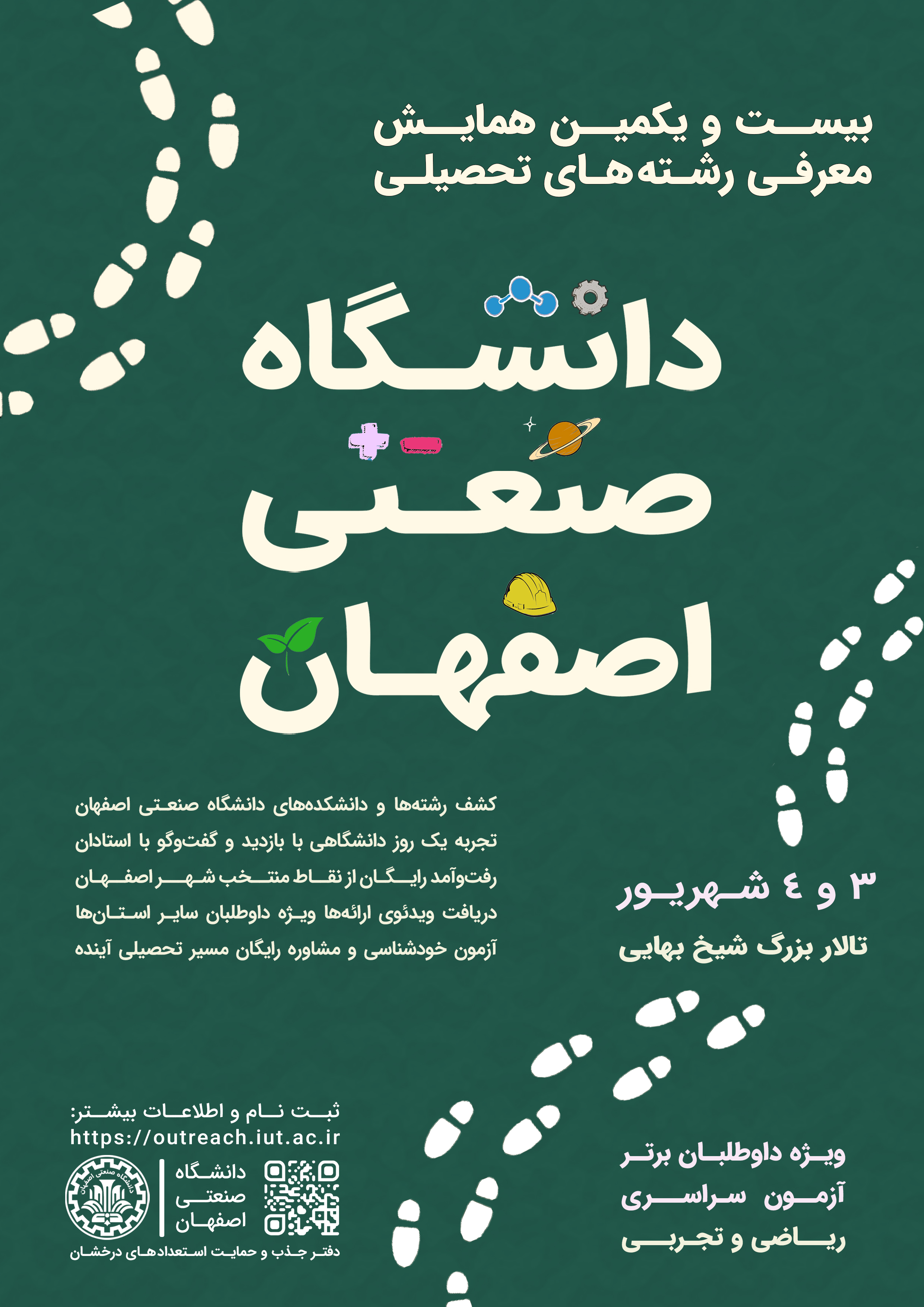 به گزارش روابط عمومی دانشگاه صنعتی اصفهان، این همایش ویژه داوطلبان برتر آزمون سراسری گروه‌های ریاضی و تجربی است و با هدف آشنایی بیشتر آنان با رشته‌ها و دانشکده‌های این دانشگاه و ظرفیت‌های علمی و پژوهشی آن برگزار خواهد شد.